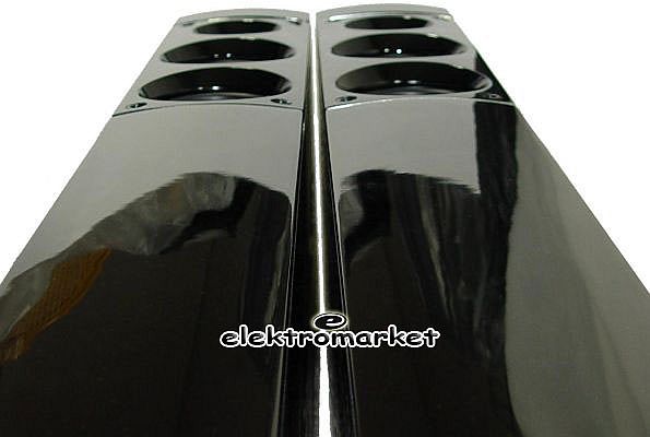 na górnych zdjęciach tego nie widać ale front kolumn jest wykończony na fortepianowy czarny kolor z wysokim połyskiem: