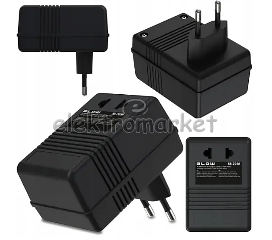 Transformator zmienia napięcie 220/240V na napięcie 110/120V którym zasilany jest sprzęt elektryczny z USA Kanady, Japonii taki jak ładowarki telefonów komórkowych, drobne RTV itp, nie podłączać do urządzeń pobierających więcej niż 30W (45W to moc chwilowa/rozruchowa)